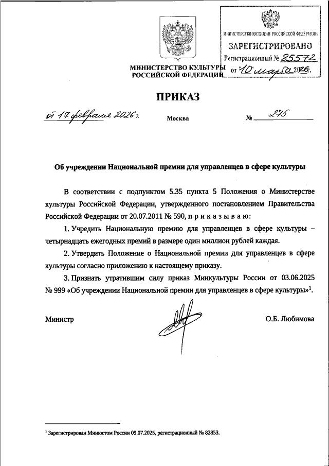 ПРИКАЗ Минкультуры РФ от 17.02.2026 N 275