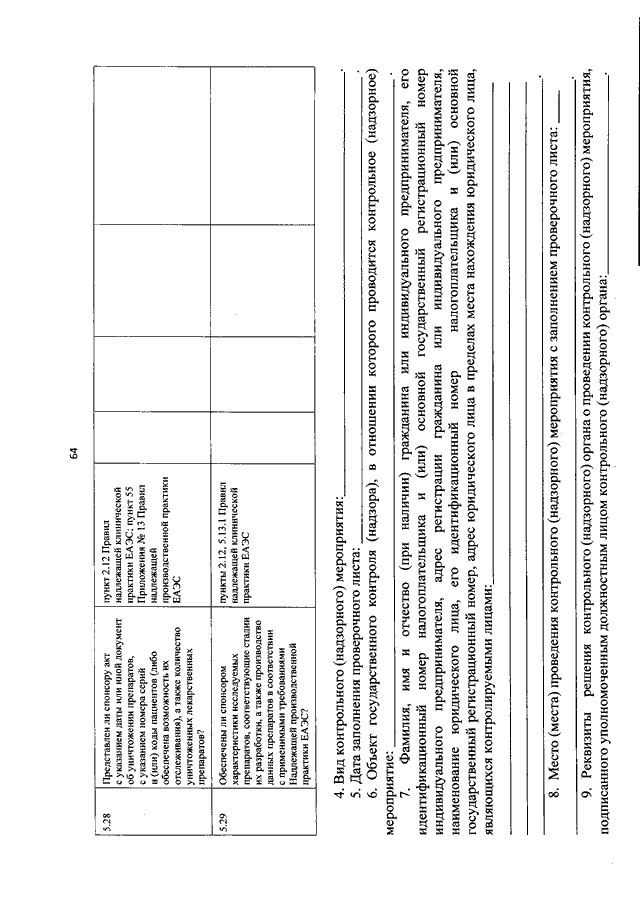 "ОБ УТВЕРЖДЕНИИ ФОРМ ПРОВЕРОЧНЫХ ЛИСТОВ (СПИСКОВ КОНТРОЛЬНЫХ ВОПРОСОВ, ОТВЕТЫ НА КОТОРЫЕ СВИДЕТЕЛЬСТВУЮТ О СОБЛЮДЕНИИ ИЛИ НЕСОБЛЮДЕНИИ КОНТРОЛИРУЕМЫМ ЛИЦОМ ОБЯЗАТЕЛЬНЫХ ТРЕБОВАНИЙ), ИСПОЛЬЗУЕМЫХ ФЕДЕРАЛЬНОЙ СЛУЖБОЙ ПО НАДЗОРУ В СФЕРЕ ЗДРАВООХРАНЕНИЯ И ЕЕ ТЕРРИТОРИАЛЬНЫМИ ОРГАНАМИ ПРИ ОСУЩЕСТВЛЕНИИ ФЕДЕРАЛЬНОГО ГОСУДАРСТВЕННОГО КОНТРОЛЯ (НАДЗОРА) В СФЕРЕ ОБРАЩЕНИЯ ЛЕКАРСТВЕННЫХ СРЕДСТВ ДЛЯ МЕДИЦИНСКОГО ПРИМЕНЕНИЯ"