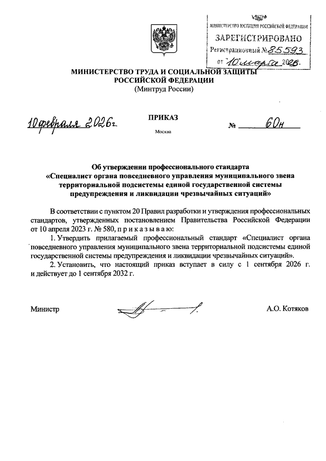 ПРИКАЗ Минтруда РФ от 10.02.2026 N 60н