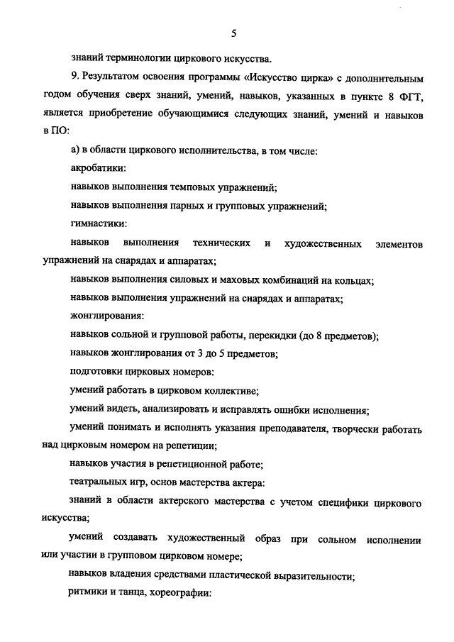 ИСКУССТВА "ИСКУССТВО ЦИРКА" И СРОКУ ОБУЧЕНИЯ ПО ЭТОЙ ПРОГРАММЕ"