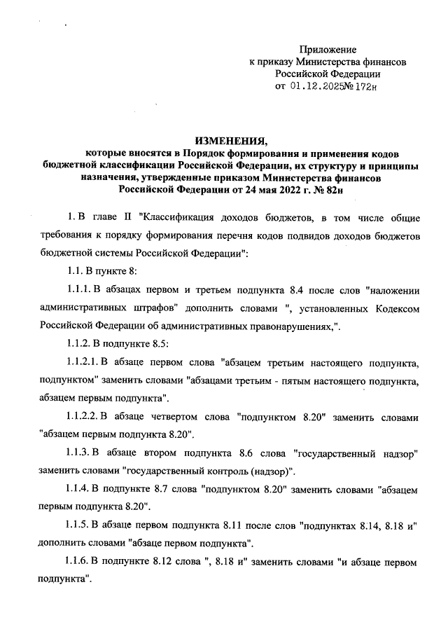 "О ВНЕСЕНИИ ИЗМЕНЕНИЙ В ПОРЯДОК ФОРМИРОВАНИЯ И ПРИМЕНЕНИЯ КОДОВ БЮДЖЕТНОЙ КЛАССИФИКАЦИИ РОССИЙСКОЙ ФЕДЕРАЦИИ, ИХ СТРУКТУРУ И ПРИНЦИПЫ НАЗНАЧЕНИЯ, УТВЕРЖДЕННЫЕ ПРИКАЗОМ МИНИСТЕРСТВА ФИНАНСОВ РОССИЙСКОЙ ФЕДЕРАЦИИ ОТ 24 МАЯ 2022 Г. N 82Н"