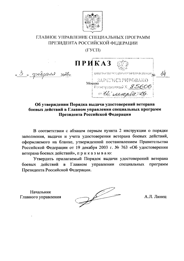 ПРИКАЗ ГУСП от 03.02.2026 N 14