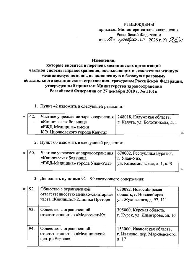 ПРИКАЗ Минздрава РФ от 12.02.2026 N 86н