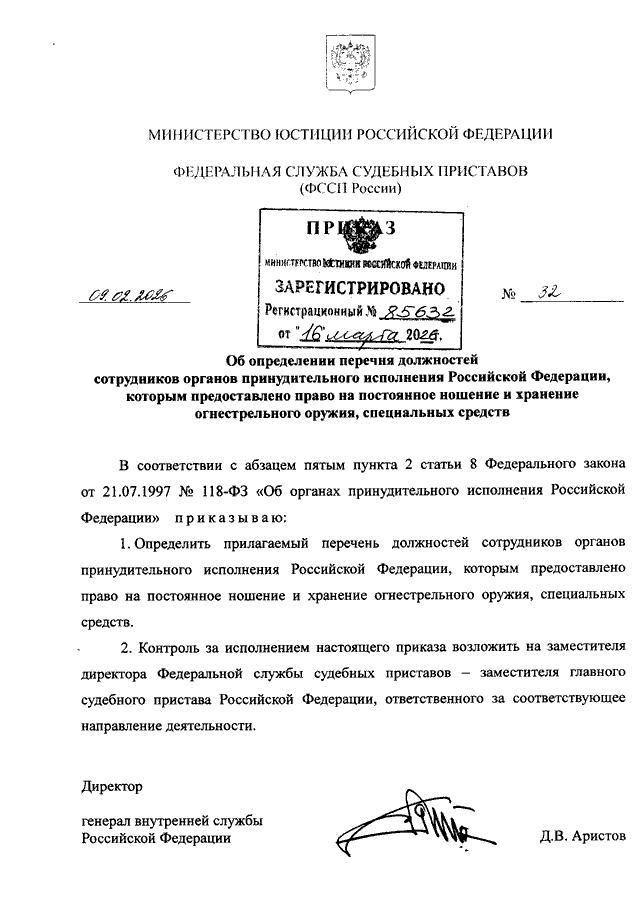 ПРИКАЗ ФССП РФ от 09.02.2026 N 32
