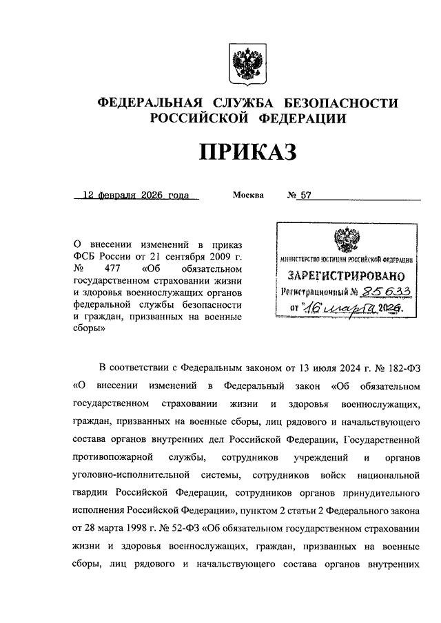 ПРИКАЗ ФСБ РФ от 12.02.2026 N 57
