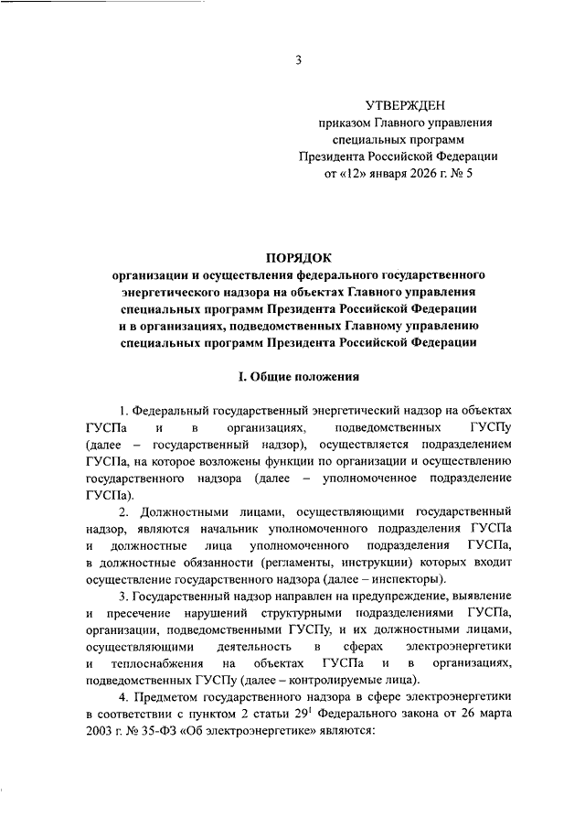 ПРИКАЗ ГУСП от 12.01.2026 N 5