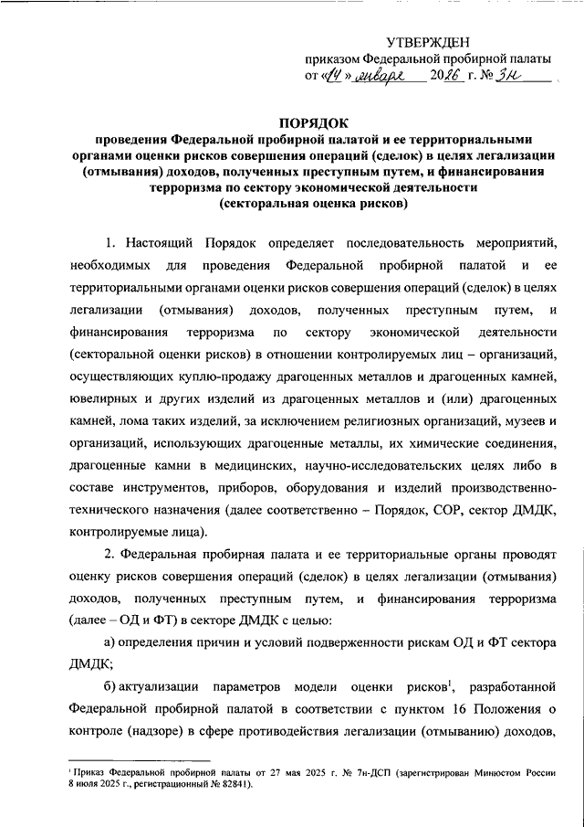 ПРИКАЗ Федеральной пробирной палаты от 14.01.2026 N 3н