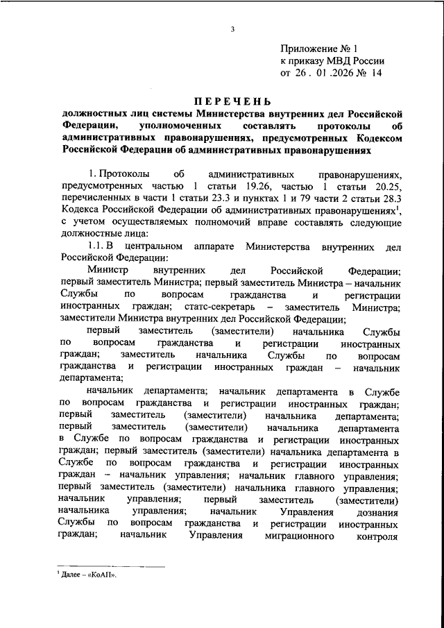 ПРИКАЗ МВД РФ от 26.01.2026 N 14