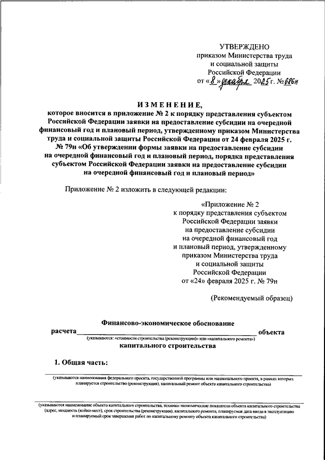 "О ВНЕСЕНИИ ИЗМЕНЕНИЯ В ПРИЛОЖЕНИЕ N 2 К ПОРЯДКУ ПРЕДСТАВЛЕНИЯ СУБЪЕКТОМ РОССИЙСКОЙ ФЕДЕРАЦИИ ЗАЯВКИ НА ПРЕДОСТАВЛЕНИЕ СУБСИДИИ НА ОЧЕРЕДНОЙ ФИНАНСОВЫЙ ГОД И ПЛАНОВЫЙ ПЕРИОД, УТВЕРЖДЕННОМУ ПРИКАЗОМ МИНИСТЕРСТВА ТРУДА И СОЦИАЛЬНОЙ ЗАЩИТЫ РОССИЙСКОЙ ФЕДЕРАЦИИ ОТ 24 ФЕВРАЛЯ 2025 Г. N 79Н "ОБ УТВЕРЖДЕНИИ ФОРМЫ ЗАЯВКИ НА ПРЕДОСТАВЛЕНИЕ СУБСИДИИ НА ОЧЕРЕДНОЙ ФИНАНСОВЫЙ ГОД И ПЛАНОВЫЙ ПЕРИОД, ПОРЯДКА ПРЕДСТАВЛЕНИЯ СУБЪЕКТОМ РОССИЙСКОЙ ФЕДЕРАЦИИ ЗАЯВКИ НА ПРЕДОСТАВЛЕНИЕ СУБСИДИИ НА ОЧЕРЕДНОЙ ФИНАНСОВЫЙ ГОД И ПЛАНОВЫЙ ПЕРИОД"