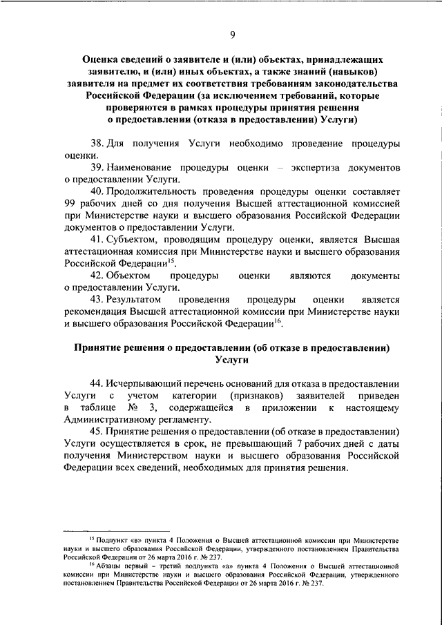"ОБ УТВЕРЖДЕНИИ АДМИНИСТРАТИВНОГО РЕГЛАМЕНТА МИНИСТЕРСТВА НАУКИ И ВЫСШЕГО ОБРАЗОВАНИЯ РОССИЙСКОЙ ФЕДЕРАЦИИ ПО ПРЕДОСТАВЛЕНИЮ ГОСУДАРСТВЕННОЙ УСЛУГИ "ПРЕДОСТАВЛЕНИЕ ПО ХОДАТАЙСТВАМ ОБРАЗОВАТЕЛЬНЫХ ОРГАНИЗАЦИЙ ВЫСШЕГО ОБРАЗОВАНИЯ, ОРГАНИЗАЦИЙ ДОПОЛНИТЕЛЬНОГО ПРОФЕССИОНАЛЬНОГО ОБРАЗОВАНИЯ И НАУЧНЫХ ОРГАНИЗАЦИЙ РАЗРЕШЕНИЙ НА СОЗДАНИЕ НА ИХ БАЗЕ СОВЕТОВ ПО ЗАЩИТЕ ДИССЕРТАЦИЙ НА СОИСКАНИЕ УЧЕНОЙ СТЕПЕНИ КАНДИДАТА НАУК, НА СОИСКАНИЕ УЧЕНОЙ СТЕПЕНИ ДОКТОРА НАУК, ОПРЕДЕЛЕНИЕ И ИЗМЕНЕНИЕ СОСТАВОВ УКАЗАННЫХ СОВЕТОВ, ОПРЕДЕЛЕНИЕ ПЕРЕЧНЕЙ НАУЧНЫХ СПЕЦИАЛЬНОСТЕЙ, ПО КОТОРЫМ УКАЗАННЫМ СОВЕТАМ ПРЕДОСТАВЛЯЕТСЯ ПРАВО ПРИЕМА ДИССЕРТАЦИЙ ДЛЯ ЗАЩИТЫ"
