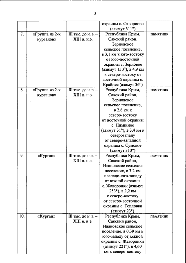 "О ВКЛЮЧЕНИИ ВЫЯВЛЕННЫХ ОБЪЕКТОВ КУЛЬТУРНОГО НАСЛЕДИЯ ПАМЯТНИКОВ ИСТОРИИ И КУЛЬТУРЫ) НАРОДОВ РОССИЙСКОЙ ФЕДЕРАЦИИ (ОБЪЕКТОВ АРХЕОЛОГИЧЕСКОГО НАСЛЕДИЯ), РАСПОЛОЖЕННЫХ НА ТЕРРИТОРИИ САКСКОГО РАЙОНА РЕСПУБЛИКИ КРЫМ, В ЕДИНЫЙ ГОСУДАРСТВЕННЫЙ РЕЕСТР ОБЪЕКТОВ КУЛЬТУРНОГО НАСЛЕДИЯ (ПАМЯТНИКОВ ИСТОРИИ И КУЛЬТУРЫ) НАРОДОВ РОССИЙСКОЙ ФЕДЕРАЦИИ В КАЧЕСТВЕ ОБЪЕКТОВ КУЛЬТУРНОГО НАСЛЕДИЯ (ПАМЯТНИКОВ ИСТОРИИ И КУЛЬТУРЫ) НАРОДОВ РОССИЙСКОЙ ФЕДЕРАЦИИ ФЕДЕРАЛЬНОГО ЗНАЧЕНИЯ И УТВЕРЖДЕНИИ ГРАНИЦ ИХ ТЕРРИТОРИЙ"