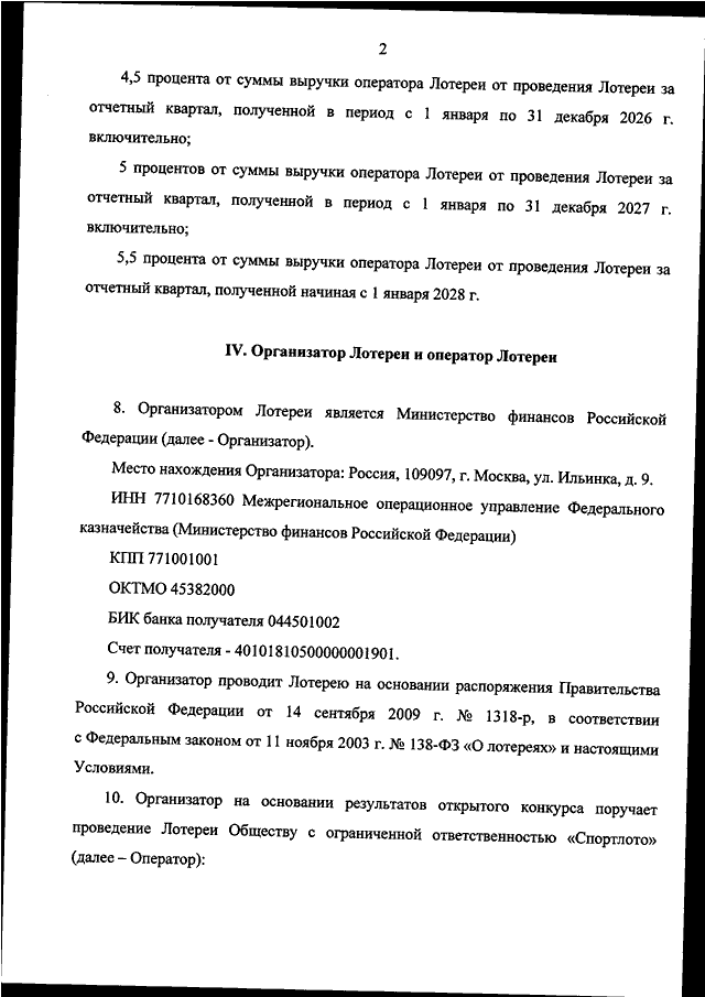 "ОБ УТВЕРЖДЕНИИ УСЛОВИЙ ПРОВЕДЕНИЯ 2 ТИРАЖНЫХ ВСЕРОССИЙСКИХ ГОСУДАРСТВЕННЫХ ЛОТЕРЕЙ И 10 БЕСТИРАЖНЫХ ВСЕРОССИЙСКИХ ГОСУДАРСТВЕННЫХ ЛОТЕРЕЙ В ПОДДЕРЖКУ РАЗВИТИЯ СПОРТА ВЫСШИХ ДОСТИЖЕНИЙ И СИСТЕМЫ ПОДГОТОВКИ СПОРТИВНОГО РЕЗЕРВА"
