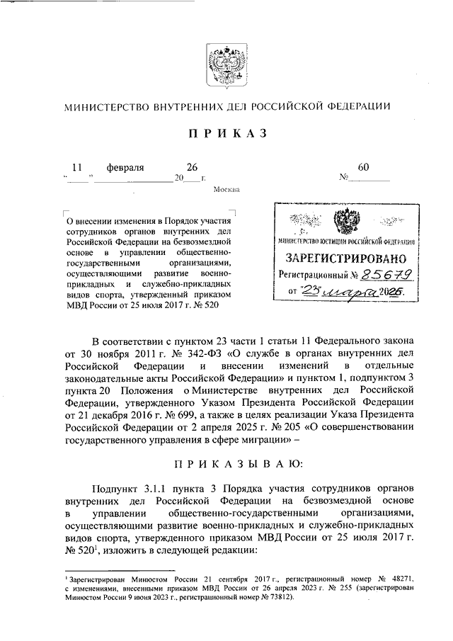 ПРИКАЗ МВД РФ от 11.02.2026 N 60