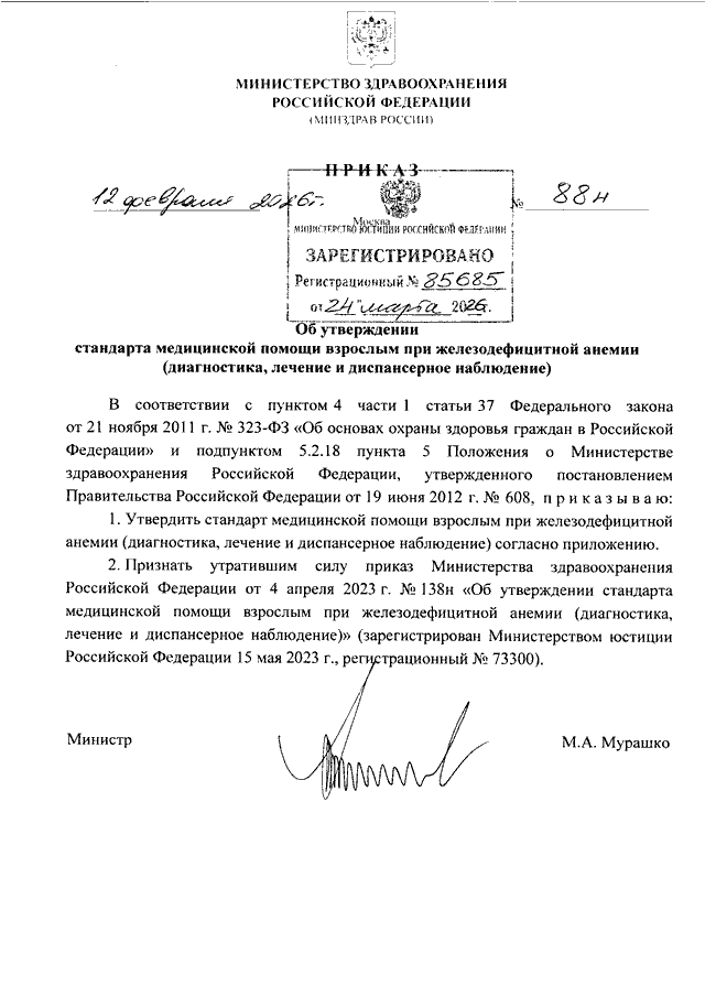 ПРИКАЗ Минздрава РФ от 12.02.2026 N 88н