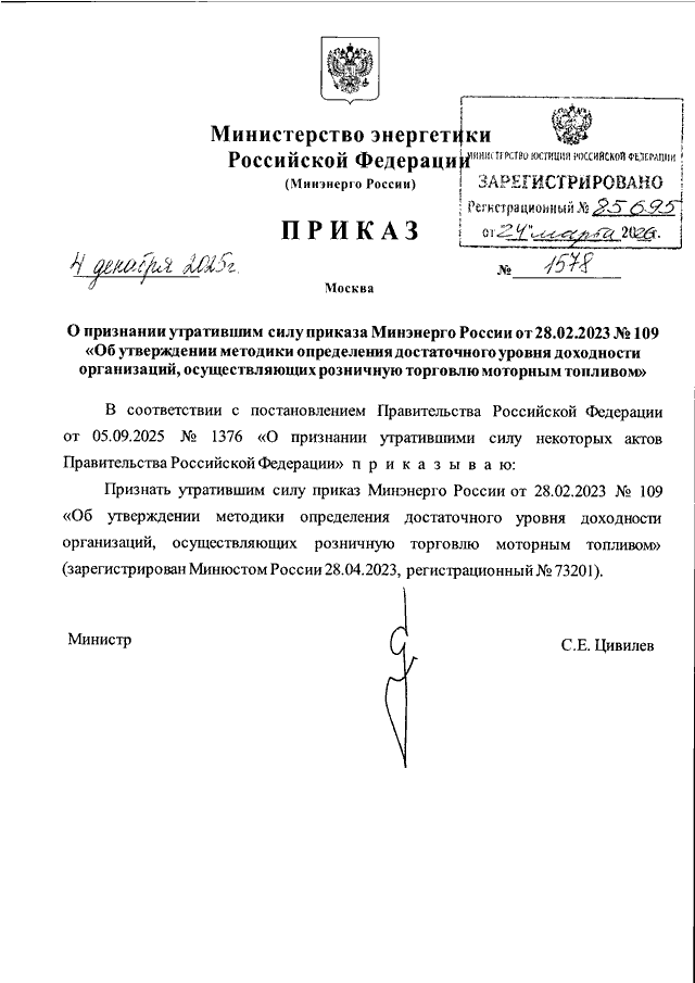 ПРИКАЗ Минэнерго РФ от 04.12.2025 N 1578