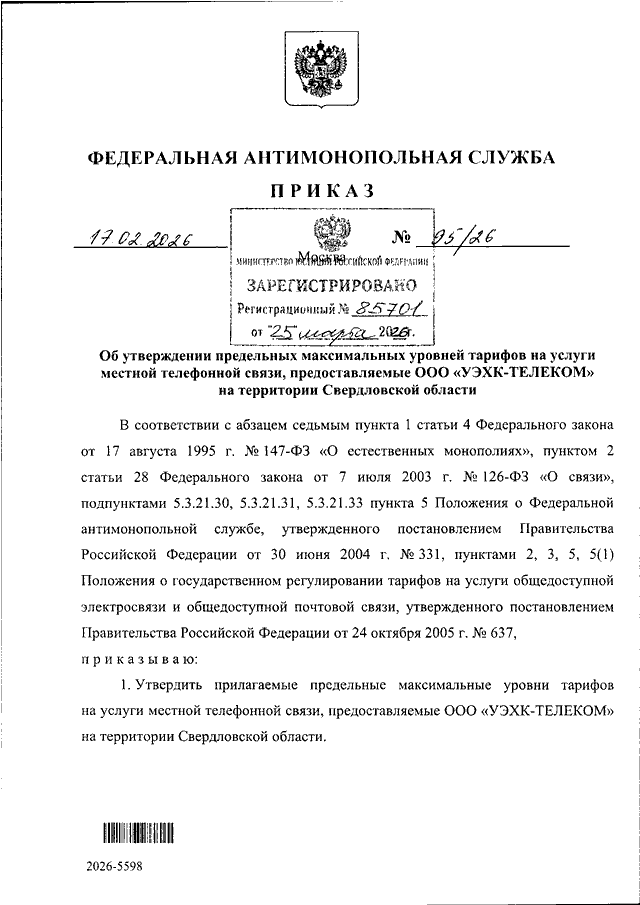 ПРИКАЗ Федеральной антимонопольной службы от 17.02.2026 N 95/26