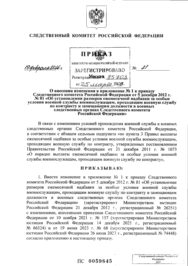 ПРИКАЗ Следственного комитета РФ от 19.02.2026 N 21