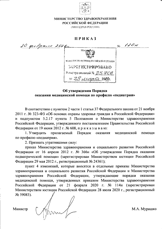ПРИКАЗ Минздрава РФ от 20.02.2026 N 120н