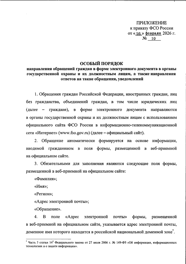 ПРИКАЗ ФСО РФ от 16.02.2026 N 10