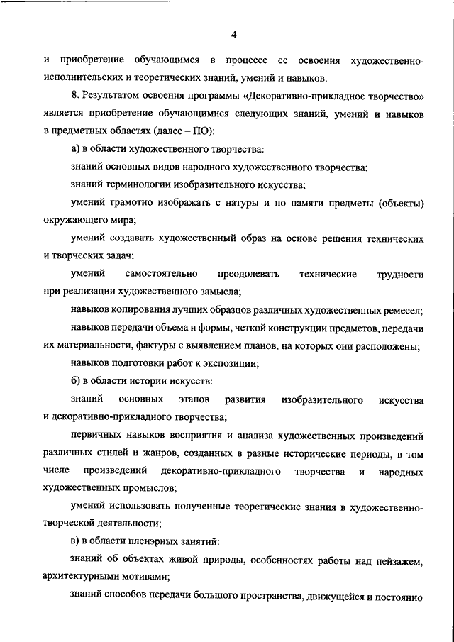 "ОБ УТВЕРЖДЕНИИ ФЕДЕРАЛЬНЫХ ГОСУДАРСТВЕННЫХ ТРЕБОВАНИЙ К СОДЕРЖАНИЮ, СТРУКТУРЕ И УСЛОВИЯМ РЕАЛИЗАЦИИ ДОПОЛНИТЕЛЬНОЙ ПРЕДПРОФЕССИОНАЛЬНОЙ ПРОГРАММЫ В ОБЛАСТИ ИЗОБРАЗИТЕЛЬНОГО ИСКУССТВА "ДЕКОРАТИВНО - ПРИКЛАДНОЕ ТВОРЧЕСТВО" И СРОКУ ОБУЧЕНИЯ ПО ЭТОЙ ПРОГРАММЕ"