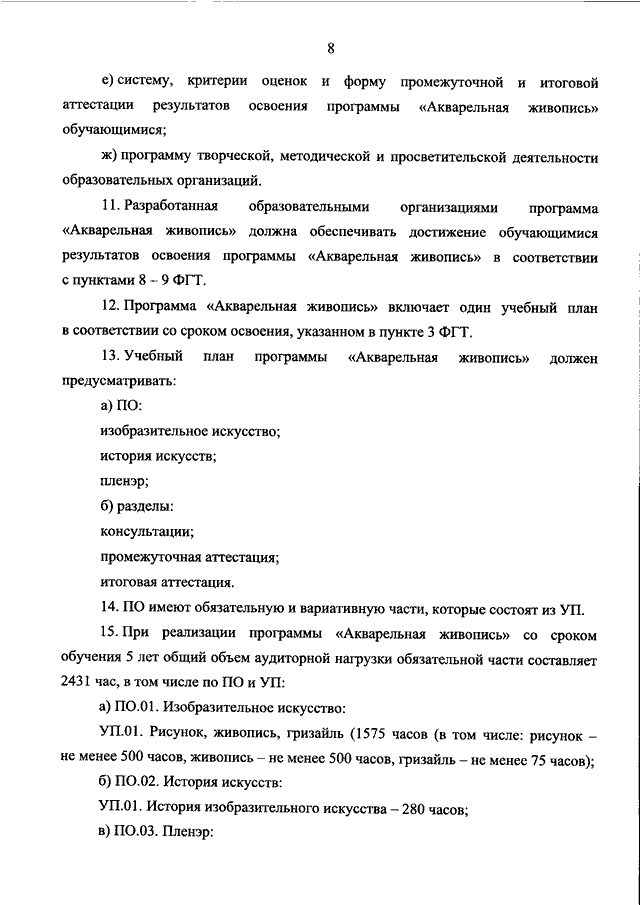 "ОБ УТВЕРЖДЕНИИ ФЕДЕРАЛЬНЫХ ГОСУДАРСТВЕННЫХ ТРЕБОВАНИЙ К МИНИМУМУ СОДЕРЖАНИЯ, СТРУКТУРЕ И УСЛОВИЯМ РЕАЛИЗАЦИИ ДОПОЛНИТЕЛЬНОЙ ПРЕДПРОФЕССИОНАЛЬНОЙ ПРОГРАММЫ В ОБЛАСТИ ИЗОБРАЗИТЕЛЬНОГО ИСКУССТВА "АКВАРЕЛЬНАЯ ЖИВОПИСЬ" И СРОКУ ОБУЧЕНИЯ ПО ЭТОЙ ПРОГРАММЕ"