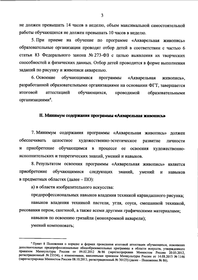 "ОБ УТВЕРЖДЕНИИ ФЕДЕРАЛЬНЫХ ГОСУДАРСТВЕННЫХ ТРЕБОВАНИЙ К МИНИМУМУ СОДЕРЖАНИЯ, СТРУКТУРЕ И УСЛОВИЯМ РЕАЛИЗАЦИИ ДОПОЛНИТЕЛЬНОЙ ПРЕДПРОФЕССИОНАЛЬНОЙ ПРОГРАММЫ В ОБЛАСТИ ИЗОБРАЗИТЕЛЬНОГО ИСКУССТВА "АКВАРЕЛЬНАЯ ЖИВОПИСЬ" И СРОКУ ОБУЧЕНИЯ ПО ЭТОЙ ПРОГРАММЕ"