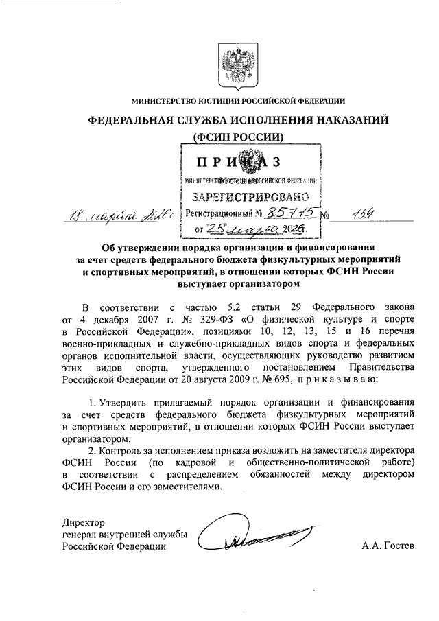 ПРИКАЗ ФСИН РФ от 18.03.2026 N 139