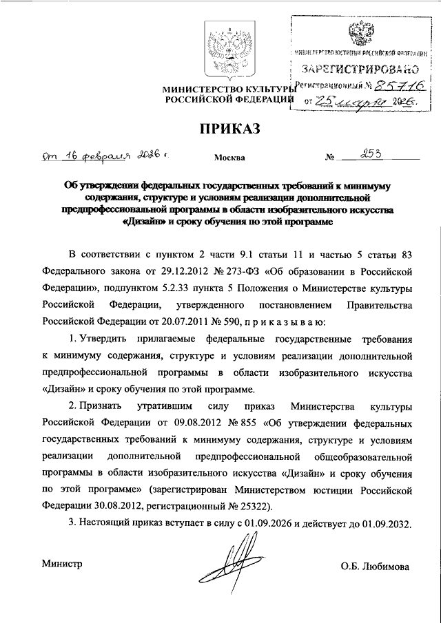 ПРИКАЗ Минкультуры РФ от 16.02.2026 N 253