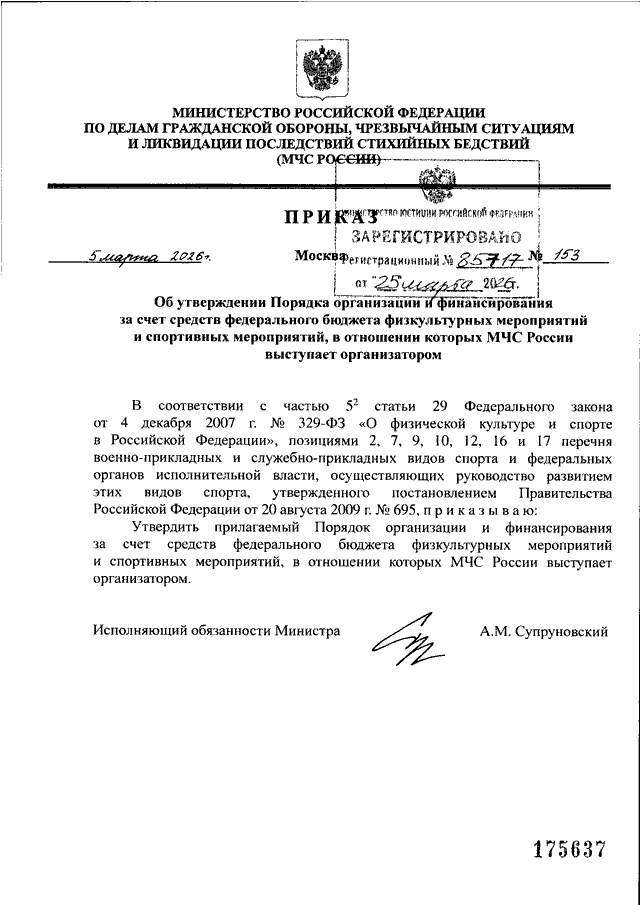 ПРИКАЗ МЧС РФ от 05.03.2026 N 153