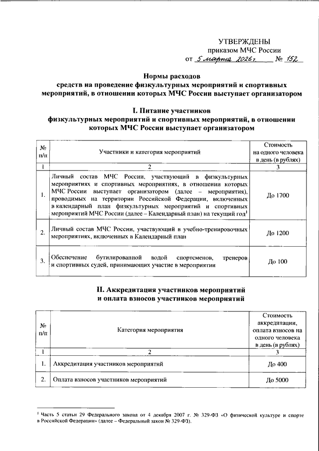"ОБ УСТАНОВЛЕНИИ НОРМ РАСХОДОВ СРЕДСТВ НА ПРОВЕДЕНИЕ ФИЗКУЛЬТУРНЫХ МЕРОПРИЯТИЙ И СПОРТИВНЫХ МЕРОПРИЯТИЙ, В ОТНОШЕНИИ КОТОРЫХ МЧС РОССИИ ВЫСТУПАЕТ ОРГАНИЗАТОРОМ"