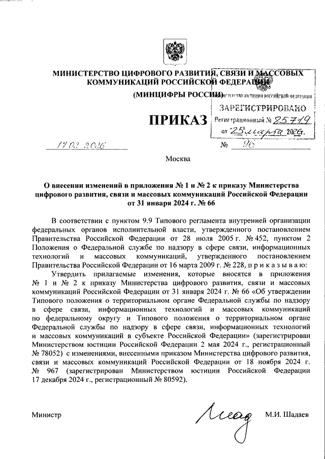 ПРИКАЗ Минцифры России от 17.02.2026 N 96