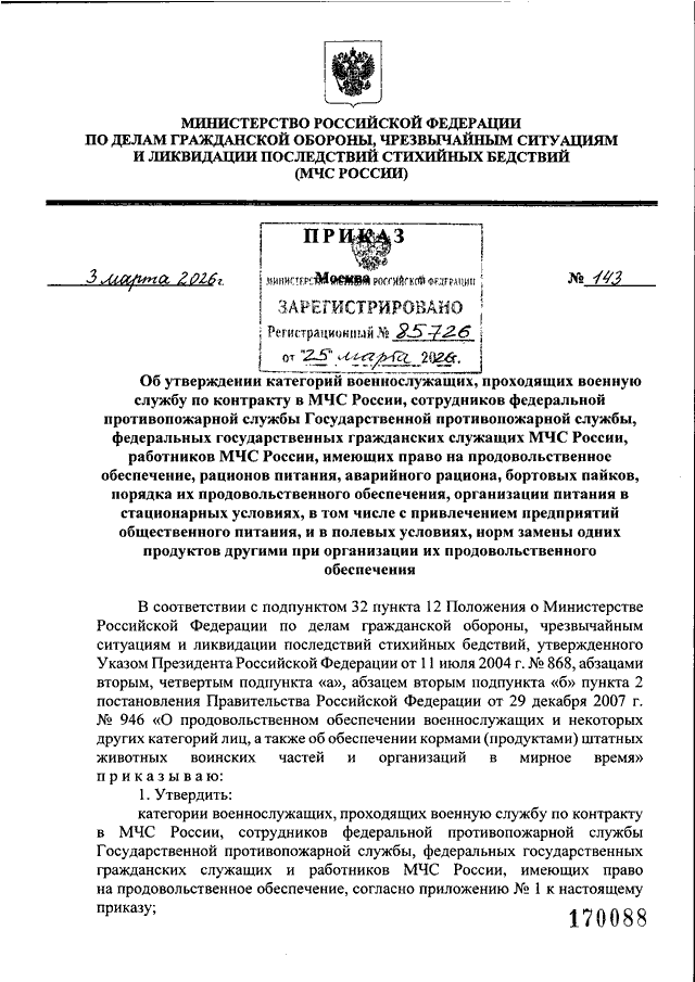 ПРИКАЗ МЧС РФ от 03.03.2026 N 143