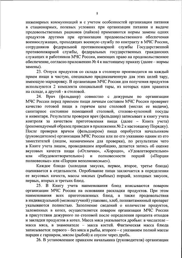 "ОБ УТВЕРЖДЕНИИ КАТЕГОРИЙ ВОЕННОСЛУЖАЩИХ, ПРОХОДЯЩИХ ВОЕННУЮ СЛУЖБУ ПО КОНТРАКТУ В МЧС РОССИИ, СОТРУДНИКОВ ФЕДЕРАЛЬНОЙ ПРОТИВОПОЖАРНОЙ СЛУЖБЫ ГОСУДАРСТВЕННОЙ ПРОТИВОПОЖАРНОЙ СЛУЖБЫ, ФЕДЕРАЛЬНЫХ ГОСУДАРСТВЕННЫХ ГРАЖДАНСКИХ СЛУЖАЩИХ МЧС РОССИИ, РАБОТНИКОВ МЧС РОССИИ, ИМЕЮЩИХ ПРАВО НА ПРОДОВОЛЬСТВЕННОЕ ОБЕСПЕЧЕНИЕ, РАЦИОНОВ ПИТАНИЯ, АВАРИЙНОГО РАЦИОНА, БОРТОВЫХ ПАЙКОВ, ПОРЯДКА ИХ ПРОДОВОЛЬСТВЕННОГО ОБЕСПЕЧЕНИЯ, ОРГАНИЗАЦИИ ПИТАНИЯ В СТАЦИОНАРНЫХ УСЛОВИЯХ, В ТОМ ЧИСЛЕ С ПРИВЛЕЧЕНИЕМ ПРЕДПРИЯТИЙ ОБЩЕСТВЕННОГО ПИТАНИЯ, И В ПОЛЕВЫХ УСЛОВИЯХ, НОРМ ЗАМЕНЫ ОДНИХ ПРОДУКТОВ ДРУГИМИ ПРИ ОРГАНИЗАЦИИ ИХ ПРОДОВОЛЬСТВЕННОГО ОБЕСПЕЧЕНИЯ"