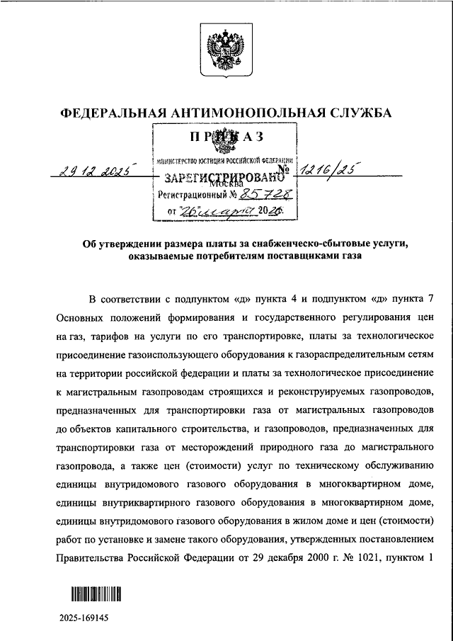 ПРИКАЗ Федеральной антимонопольной службы от 29.12.2025 N 1216/25