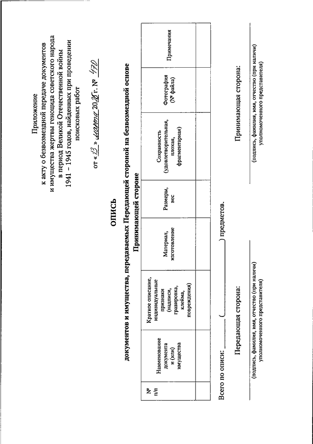 "ОБ УСТАНОВЛЕНИИ ПОРЯДКА ПЕРЕДАЧИ ДОКУМЕНТОВ И ИНОГО ИМУЩЕСТВА ЖЕРТВ ГЕНОЦИДА СОВЕТСКОГО НАРОДА В ПЕРИОД ВЕЛИКОЙ ОТЕЧЕСТВЕННОЙ ВОЙНЫ 1941 - 1945 ГОДОВ, НАЙДЕННЫХ ПРИ ПРОВЕДЕНИИ ПОИСКОВЫХ РАБОТ, ИХ РОДСТВЕННИКАМ ИЛИ В МУЗЕИ"