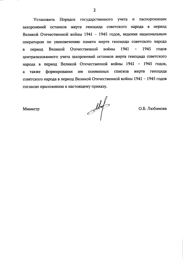 "ОБ УСТАНОВЛЕНИИ ПОРЯДКА ГОСУДАРСТВЕННОГО УЧЕТА И ПАСПОРТИЗАЦИИ ЗАХОРОНЕНИЙ ОСТАНКОВ ЖЕРТВ ГЕНОЦИДА СОВЕТСКОГО НАРОДА В ПЕРИОД ВЕЛИКОЙ ОТЕЧЕСТВЕННОЙ ВОЙНЫ 1941 - 1945 ГОДОВ, ВЕДЕНИЯ НАЦИОНАЛЬНЫМ ОПЕРАТОРОМ ПО УВЕКОВЕЧЕНИЮ ПАМЯТИ ЖЕРТВ ГЕНОЦИДА СОВЕТСКОГО НАРОДА В ПЕРИОД ВЕЛИКОЙ ОТЕЧЕСТВЕННОЙ ВОЙНЫ 1941 - 1945 ГОДОВ ЦЕНТРАЛИЗОВАННОГО УЧЕТА ЗАХОРОНЕНИЙ ОСТАНКОВ ЖЕРТВ ГЕНОЦИДА СОВЕТСКОГО НАРОДА В ПЕРИОД ВЕЛИКОЙ ОТЕЧЕСТВЕННОЙ ВОЙНЫ 1941 - 1945 ГОДОВ, А ТАКЖЕ ФОРМИРОВАНИЯ ИМ ПОИМЕННЫХ СПИСКОВ ЖЕРТВ ГЕНОЦИДА СОВЕТСКОГО НАРОДА В ПЕРИОД ВЕЛИКОЙ ОТЕЧЕСТВЕННОЙ ВОЙНЫ 1941 - 1945 ГОДОВ"