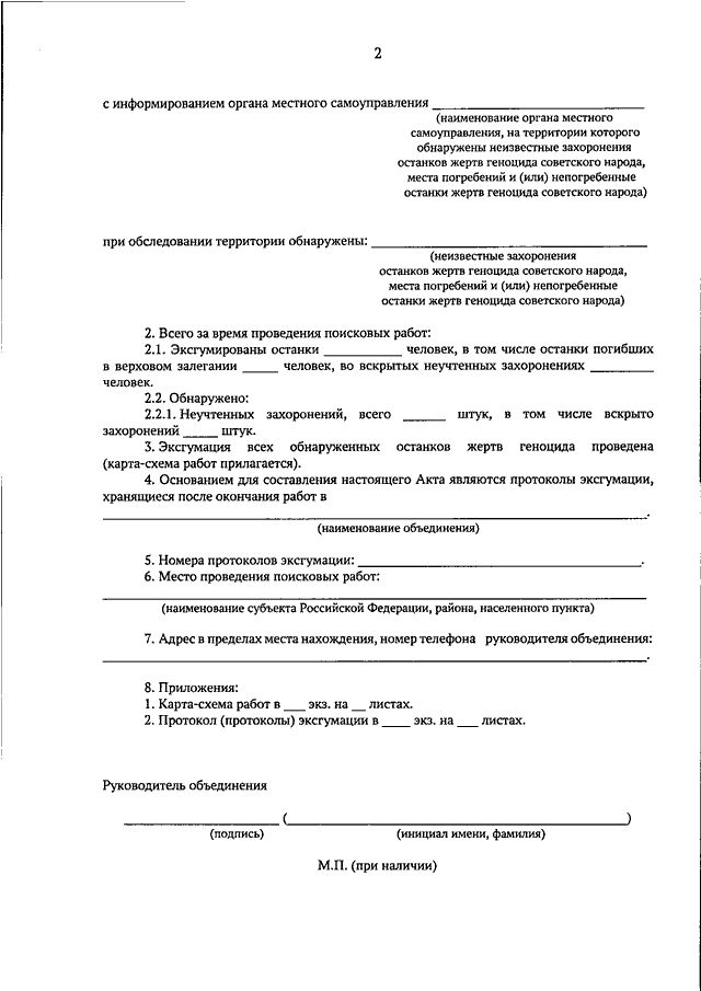 "ОБ УСТАНОВЛЕНИИ ПОРЯДКА ОРГАНИЗАЦИИ И ПРОВЕДЕНИЯ ПОИСКОВОЙ РАБОТЫ ОБЩЕСТВЕННО - ГОСУДАРСТВЕННЫМИ ОБЪЕДИНЕНИЯМИ И ОБЩЕСТВЕННЫМИ ОБЪЕДИНЕНИЯМИ, УПОЛНОМОЧЕННЫМИ НА ПРОВЕДЕНИЕ ТАКОЙ РАБОТЫ, В ЦЕЛЯХ ВЫЯВЛЕНИЯ НЕИЗВЕСТНЫХ ЗАХОРОНЕНИЙ ОСТАНКОВ ЖЕРТВ ГЕНОЦИДА СОВЕТСКОГО НАРОДА В ПЕРИОД ВЕЛИКОЙ ОТЕЧЕСТВЕННОЙ ВОЙНЫ 1941 - 1945 ГОДОВ И НЕПОГРЕБЕННЫХ ОСТАНКОВ ЖЕРТВ ГЕНОЦИДА СОВЕТСКОГО НАРОДА В ПЕРИОД ВЕЛИКОЙ ОТЕЧЕСТВЕННОЙ ВОЙНЫ 1941 - 1945 ГОДОВ, УСТАНОВЛЕНИЯ ИМЕН ЖЕРТВ ГЕНОЦИДА СОВЕТСКОГО НАРОДА В ПЕРИОД ВЕЛИКОЙ ОТЕЧЕСТВЕННОЙ ВОЙНЫ 1941 - 1945 ГОДОВ И УВЕКОВЕЧЕНИЯ ПАМЯТИ ЖЕРТВ ГЕНОЦИДА СОВЕТСКОГО НАРОДА В ПЕРИОД ВЕЛИКОЙ ОТЕЧЕСТВЕННОЙ ВОЙНЫ 1941 - 1945 ГОДОВ"