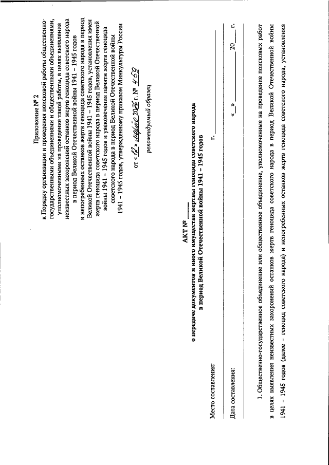 "ОБ УСТАНОВЛЕНИИ ПОРЯДКА ОРГАНИЗАЦИИ И ПРОВЕДЕНИЯ ПОИСКОВОЙ РАБОТЫ ОБЩЕСТВЕННО - ГОСУДАРСТВЕННЫМИ ОБЪЕДИНЕНИЯМИ И ОБЩЕСТВЕННЫМИ ОБЪЕДИНЕНИЯМИ, УПОЛНОМОЧЕННЫМИ НА ПРОВЕДЕНИЕ ТАКОЙ РАБОТЫ, В ЦЕЛЯХ ВЫЯВЛЕНИЯ НЕИЗВЕСТНЫХ ЗАХОРОНЕНИЙ ОСТАНКОВ ЖЕРТВ ГЕНОЦИДА СОВЕТСКОГО НАРОДА В ПЕРИОД ВЕЛИКОЙ ОТЕЧЕСТВЕННОЙ ВОЙНЫ 1941 - 1945 ГОДОВ И НЕПОГРЕБЕННЫХ ОСТАНКОВ ЖЕРТВ ГЕНОЦИДА СОВЕТСКОГО НАРОДА В ПЕРИОД ВЕЛИКОЙ ОТЕЧЕСТВЕННОЙ ВОЙНЫ 1941 - 1945 ГОДОВ, УСТАНОВЛЕНИЯ ИМЕН ЖЕРТВ ГЕНОЦИДА СОВЕТСКОГО НАРОДА В ПЕРИОД ВЕЛИКОЙ ОТЕЧЕСТВЕННОЙ ВОЙНЫ 1941 - 1945 ГОДОВ И УВЕКОВЕЧЕНИЯ ПАМЯТИ ЖЕРТВ ГЕНОЦИДА СОВЕТСКОГО НАРОДА В ПЕРИОД ВЕЛИКОЙ ОТЕЧЕСТВЕННОЙ ВОЙНЫ 1941 - 1945 ГОДОВ"