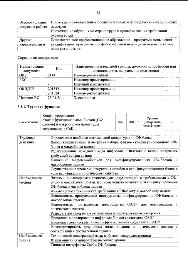 "ОБ УТВЕРЖДЕНИИ ПРОФЕССИОНАЛЬНОГО СТАНДАРТА "СПЕЦИАЛИСТ В ОБЛАСТИ ПРОЕКТИРОВАНИЯ И СОПРОВОЖДЕНИЯ ЦИФРОВЫХ ИНТЕГРАЛЬНЫХ СХЕМ И СИСТЕМ НА КРИСТАЛЛЕ"