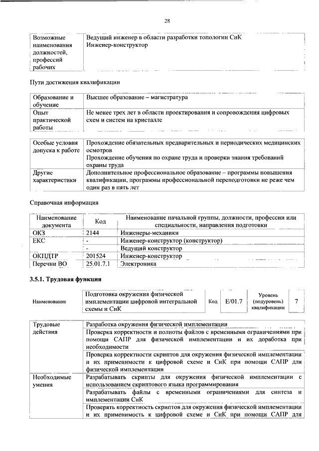 "ОБ УТВЕРЖДЕНИИ ПРОФЕССИОНАЛЬНОГО СТАНДАРТА "СПЕЦИАЛИСТ В ОБЛАСТИ ПРОЕКТИРОВАНИЯ И СОПРОВОЖДЕНИЯ ЦИФРОВЫХ ИНТЕГРАЛЬНЫХ СХЕМ И СИСТЕМ НА КРИСТАЛЛЕ"