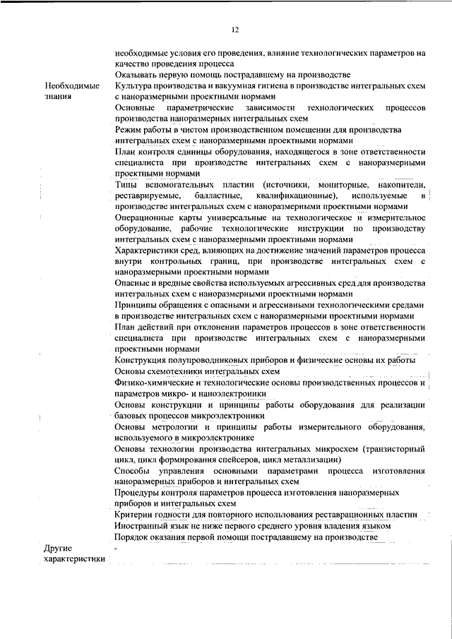 "ОБ УТВЕРЖДЕНИИ ПРОФЕССИОНАЛЬНОГО СТАНДАРТА "СПЕЦИАЛИСТ ПО ТЕХНОЛОГИИ ПРОИЗВОДСТВА НАНОРАЗМЕРНЫХ ПОЛУПРОВОДНИКОВЫХ ПРИБОРОВ И ИНТЕГРАЛЬНЫХ СХЕМ"