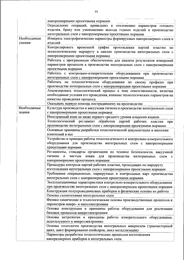 "ОБ УТВЕРЖДЕНИИ ПРОФЕССИОНАЛЬНОГО СТАНДАРТА "СПЕЦИАЛИСТ ПО ТЕХНОЛОГИИ ПРОИЗВОДСТВА НАНОРАЗМЕРНЫХ ПОЛУПРОВОДНИКОВЫХ ПРИБОРОВ И ИНТЕГРАЛЬНЫХ СХЕМ"