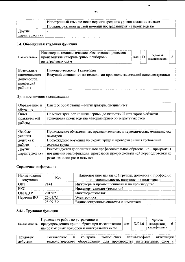 "ОБ УТВЕРЖДЕНИИ ПРОФЕССИОНАЛЬНОГО СТАНДАРТА "СПЕЦИАЛИСТ ПО ТЕХНОЛОГИИ ПРОИЗВОДСТВА НАНОРАЗМЕРНЫХ ПОЛУПРОВОДНИКОВЫХ ПРИБОРОВ И ИНТЕГРАЛЬНЫХ СХЕМ"