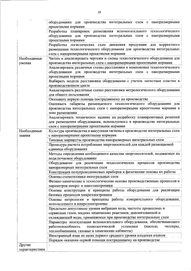 "ОБ УТВЕРЖДЕНИИ ПРОФЕССИОНАЛЬНОГО СТАНДАРТА "СПЕЦИАЛИСТ ПО ТЕХНОЛОГИИ ПРОИЗВОДСТВА НАНОРАЗМЕРНЫХ ПОЛУПРОВОДНИКОВЫХ ПРИБОРОВ И ИНТЕГРАЛЬНЫХ СХЕМ"