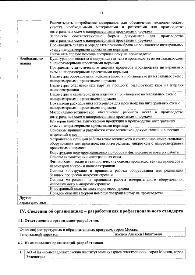 "ОБ УТВЕРЖДЕНИИ ПРОФЕССИОНАЛЬНОГО СТАНДАРТА "СПЕЦИАЛИСТ ПО ТЕХНОЛОГИИ ПРОИЗВОДСТВА НАНОРАЗМЕРНЫХ ПОЛУПРОВОДНИКОВЫХ ПРИБОРОВ И ИНТЕГРАЛЬНЫХ СХЕМ"