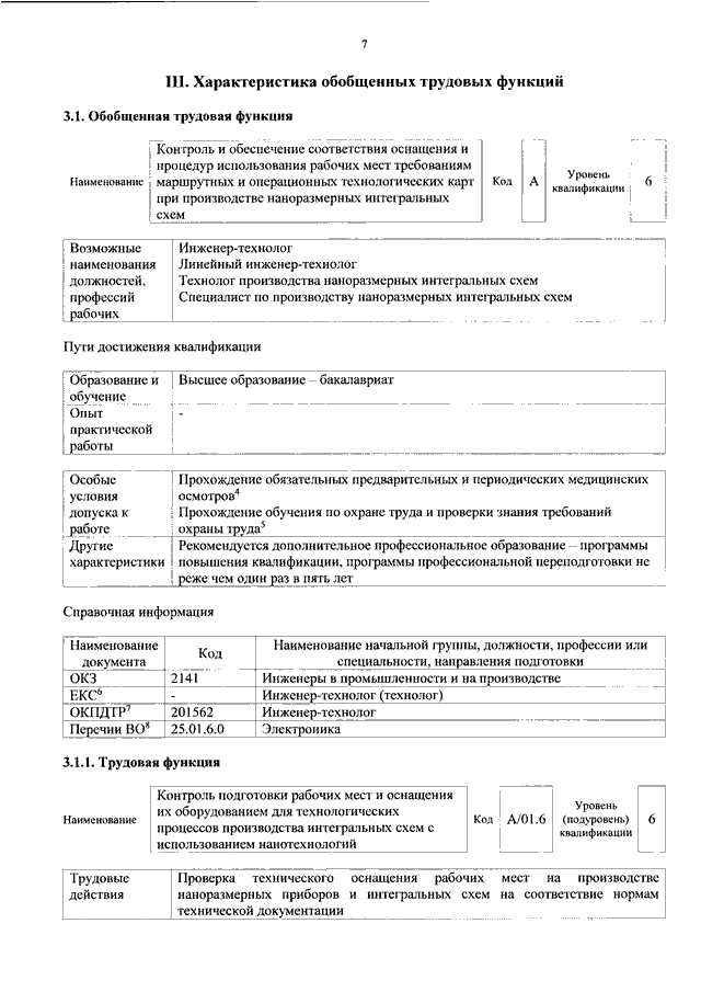 "ОБ УТВЕРЖДЕНИИ ПРОФЕССИОНАЛЬНОГО СТАНДАРТА "СПЕЦИАЛИСТ ПО ТЕХНОЛОГИИ ПРОИЗВОДСТВА НАНОРАЗМЕРНЫХ ПОЛУПРОВОДНИКОВЫХ ПРИБОРОВ И ИНТЕГРАЛЬНЫХ СХЕМ"