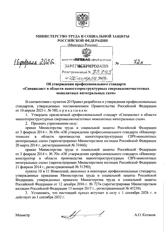 ПРИКАЗ Минтруда РФ от 16.02.2026 N 72н