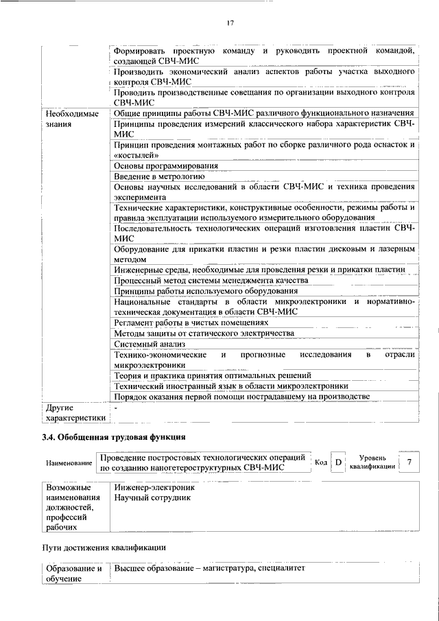 "ОБ УТВЕРЖДЕНИИ ПРОФЕССИОНАЛЬНОГО СТАНДАРТА "СПЕЦИАЛИСТ В ОБЛАСТИ НАНОГЕТЕРОСТРУКТУРНЫХ СВЕРХВЫСОКОЧАСТОТНЫХ МОНОЛИТНЫХ ИНТЕГРАЛЬНЫХ СХЕМ"