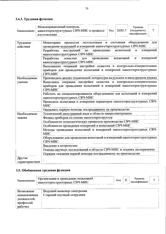 "ОБ УТВЕРЖДЕНИИ ПРОФЕССИОНАЛЬНОГО СТАНДАРТА "СПЕЦИАЛИСТ В ОБЛАСТИ НАНОГЕТЕРОСТРУКТУРНЫХ СВЕРХВЫСОКОЧАСТОТНЫХ МОНОЛИТНЫХ ИНТЕГРАЛЬНЫХ СХЕМ"