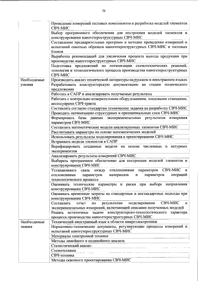 "ОБ УТВЕРЖДЕНИИ ПРОФЕССИОНАЛЬНОГО СТАНДАРТА "СПЕЦИАЛИСТ В ОБЛАСТИ НАНОГЕТЕРОСТРУКТУРНЫХ СВЕРХВЫСОКОЧАСТОТНЫХ МОНОЛИТНЫХ ИНТЕГРАЛЬНЫХ СХЕМ"